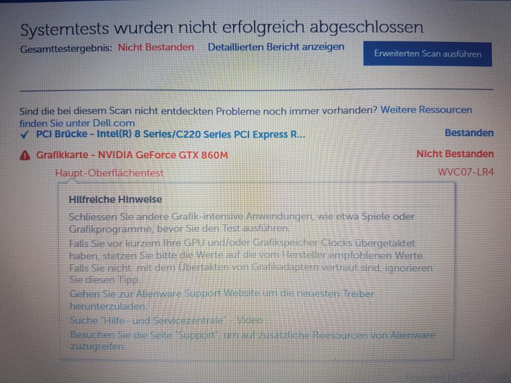 18. habe eben ein test gemacht mit dem dell support programm /habe einen fehler bekommen bei Grafikkarte habe ein bild gemacht und lade es hier hoch .... hoffe das foto ist lesbar ..
