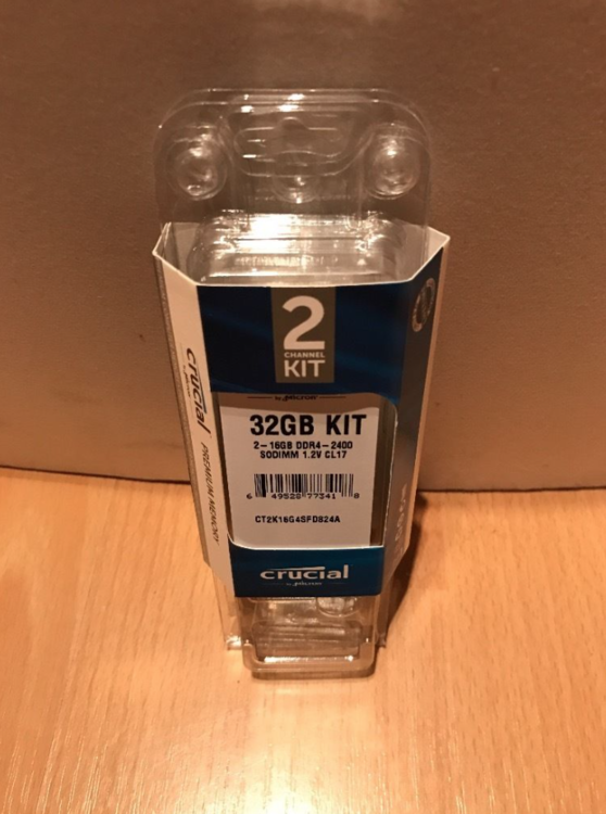 1. Zum Verkauf steht folgendes Kit: Crucial SO-DIMM Kit 32GB aus 2x 16GB, DDR4-2400, CL17 (CT2K16G4SFD824A) Der Speicher ist nagelneu, unbenutzt und wird mit Rechnung von April 2016 geliefert. Ab Kaufdatum gibt es 10 Jahre Garantie vom Hersteller. Der Speicher ist natürlich auch abwertskompatibel zum 2133MHz Standard. Preis: 120€ exkl. Versand Entweder Abholung oder versicherter Versand. Versand nur bei Vorabüberweisung. Kosten für den Versand: 5€ per DHL. Abholung im RheinMain Gebiet möglich. Ich verkaufe den Speicher, weil ich ihn nicht mehr benötige. Hatte vorsorglich gekauft für einen Einbau in ein Alienware Notebook, welches ich dann letztendlich doch nicht gekauft habe. Jetzt ist der Speicher über. Es handelt sich um einen Privatverkauf. Ich behalte mir vor den Speicher auch anderweitig oder privat zu verkaufen