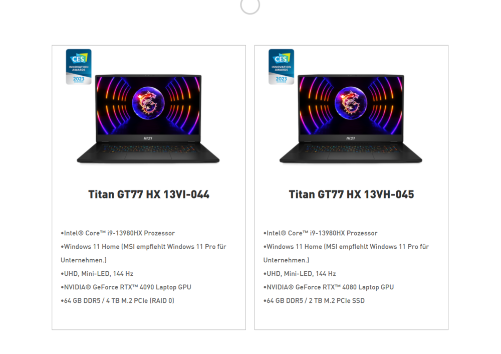 Bei MSI passiert was unter "Kaufen", zumindest für 1-2 Sekunden. Hab nen Screenshot gemacht MSI Titan GT77 HX 13V - Total Dominance -