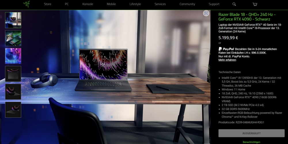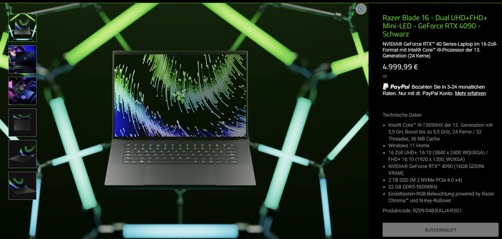 Die haben den Preis von 4080 und 4090 vertauscht ich schaue mal, der Rest ist preislich auch nicht attraktiv bisher… Für 18“ mit 4090 sind aktuell mindestens 4799€ notwendig (außer Clevo). Schon heftiger Sprung zur Generation davor -