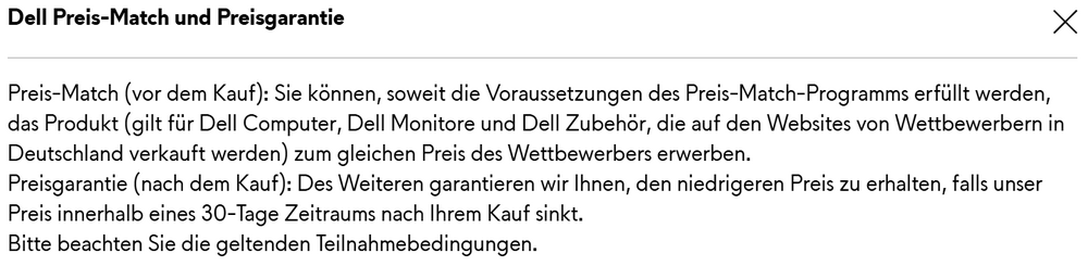 Zur Info: Dell Rewards Punkte bekommt man nicht wieder bei einer Retoure oder Stornierung der Bestellung. Super ärgerlich, aber ist leider so... Zum Thema Preis: das steht übrigens direkt auf der Webseite von Dell: Preisgarantie und Preis-Match von Dell | Dell Deutschland hmm scheint wohl einiges ausgeschlossen zu sein -