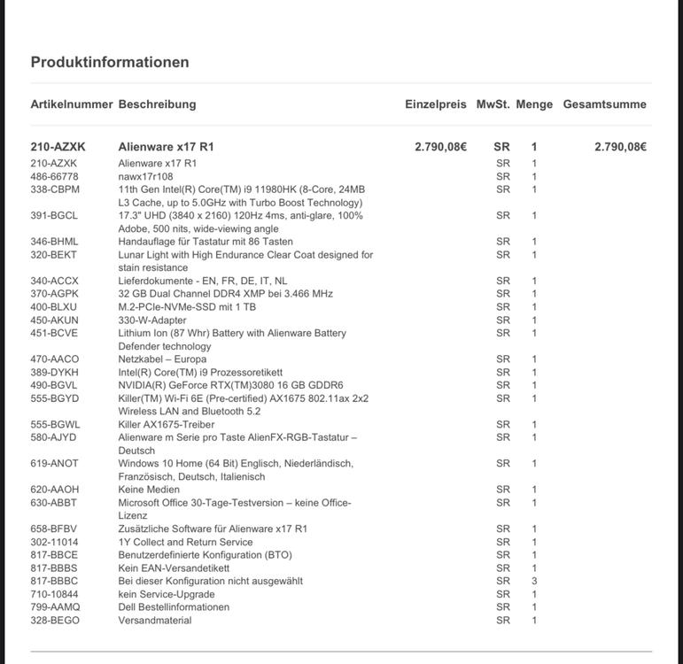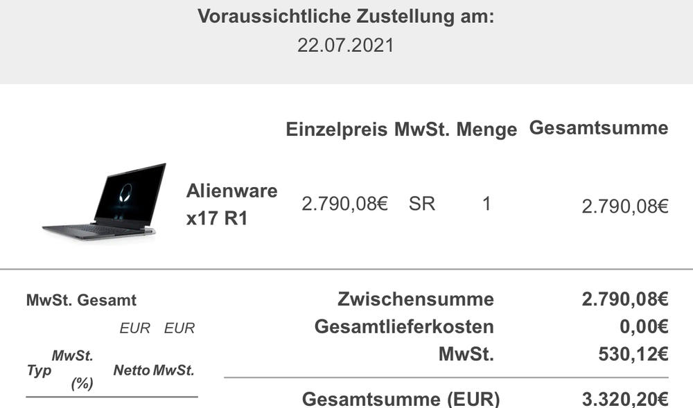 Alienware x17 R1 Alienware x17 Erfahrungsberichte und Lieferstatus