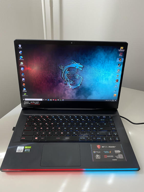 Da ich eine Kratzer und auf dem Displaydeckel hatte und der rechte Lüfter „fiept“ werde ich das Notebook zurückgeben. Das hat mir auch der technische Support empfohlen. Habe nun einen 12% Gutschein bekommen und mit deutscher Tastatur noch einmal bestellt. Sofern der Lüfter da auch unrund läuft, dann geht das Notebook auch zurück. Im Idle ist das schon extrem nervig. Zwei Dinge sind mir aufgefallen: 1. Die GPU bringt wirklich Desktop Power in ein thin and light Notebook. Da ist sogar noch Luft nach oben. 2. Die Lüfterprofile sind zu lasch eingestellt. Ohne LM wird das Notebook massivst deshalb throttlen. Mit LM, aufgebock, UV und Limitierung auf 4Ghz sind die Temps unter starker Last bei 80-85 Grad auf CPU und 72-75 auf GPU. Profil ausgeglichen -