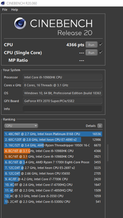 Erster Eindruck von GE66 und dem i9 ist außergewöhnlich gut. Hier passt die Qualität out of the Box. Hier hinkt aber auch wieder der Thin and Light Vergeleich. Trotzdem beachtlich was ein etwas dickeres 15 Zoll aus dem i9 herausholt. Die Kühlung ist wirklich sehr gut gelöst. Im Cinebench R20 4300 Punkte