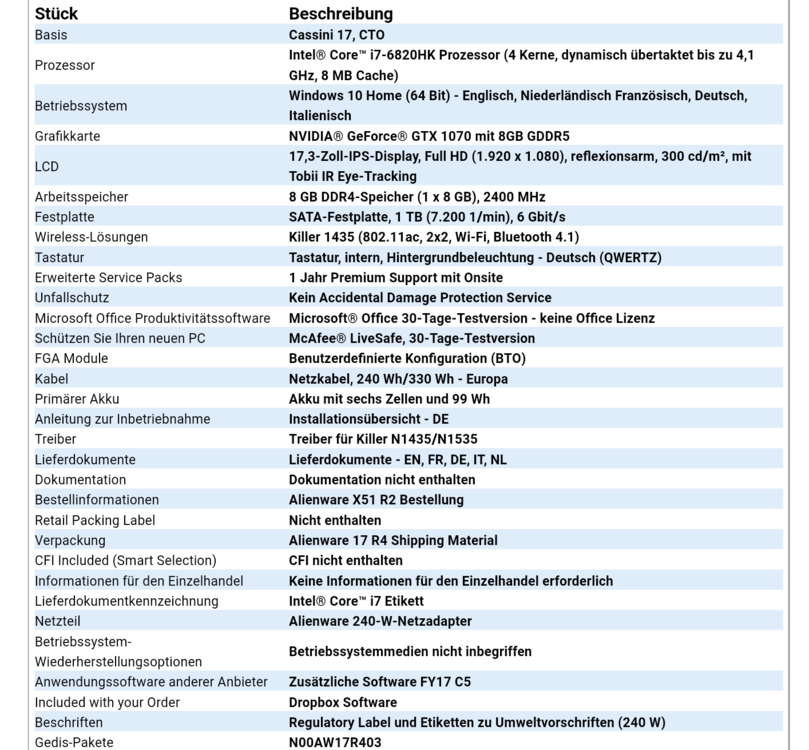 Ich glaub ich hab mich blöd ausgedrückt. Es gibt eine Aktion von Nvidia wo man beim Kauf einer 1070 oder 1080 oder beim kauf eines Laptops mit besagten Karten bei teilnehmenden Händlern. An dieser Aktion nimmt Alienware bzw Dell nicht teil. Dann gibt es noch die Aktion von Tobii beim Kauf eines AW 17r4. Diese interessiert uns wohl hier mehr -