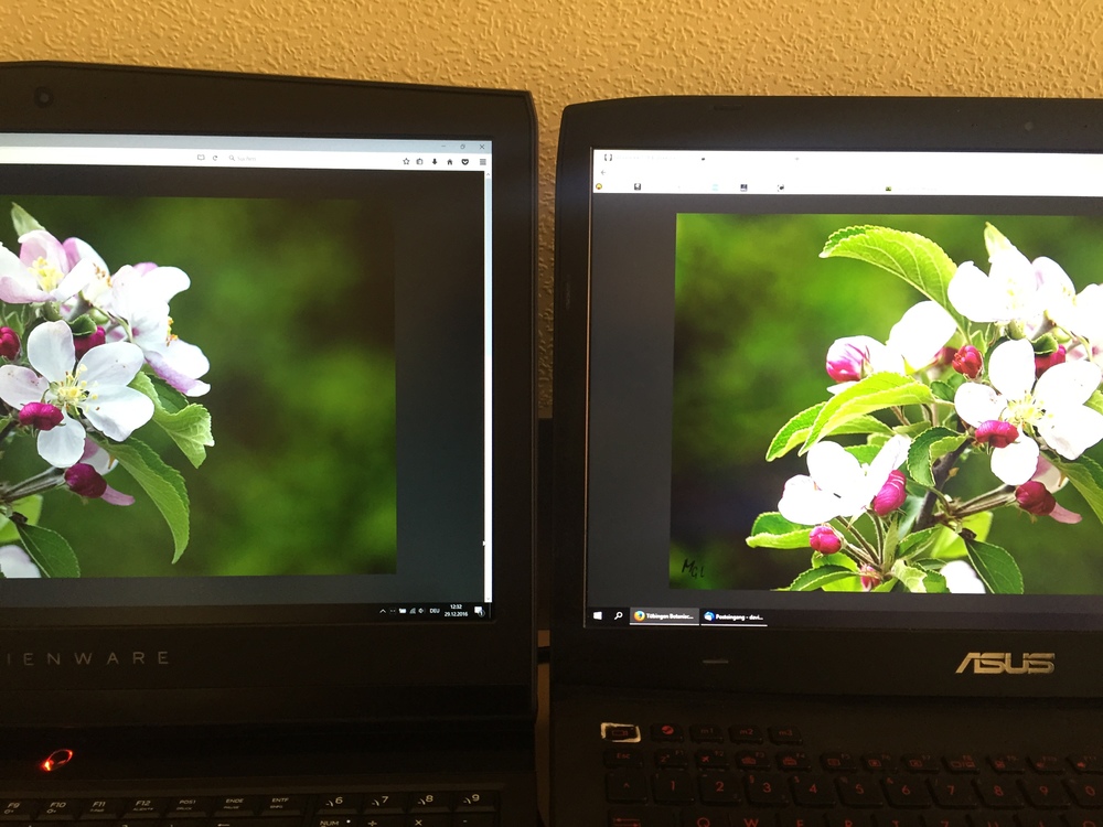 Alienware 17 R4 Laberthread & Owners Loungedarki antwortete auf captn.ko's Thema in Erfahrungsberichte & Benchmarks Hast recht, mal sehen, was Dell mir noch so anbieten kann. Dann kauf ich wahrscheinlich ein anderes Modell und dieses hier geht zurück! Manchmal sehe ich die Streifen kaum, aber dann je nach Bild sind die plötzlich wieder voll drauf. Sehr ungewöhnlich. Ansonsten ist das Display echt top. Hier mal ein paar vergleichsbilder: Links das QHD TN und rechts ein FHD IPS, der Asus ist aber schonmal eingemessen und kalibriert worden. Würde ich beim Alien auch noch machen. Kontraste sind etwas schwächer, aber vorallem auch die Blickwinkelstabilität gefällt mir gut. WARUM HAST DU NUR STREIFEN!! Auf dem vorletzten beiden Bilden kann man die Streifen im vergleich auch nochmal gut erkennen. Hier einmal der Tweet von dem Azor. Ich hoffe die nehmen das ernst.