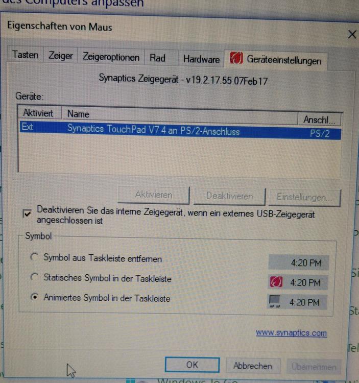 Touchpad automatisch deaktivieren bei angeschlossener Maus
