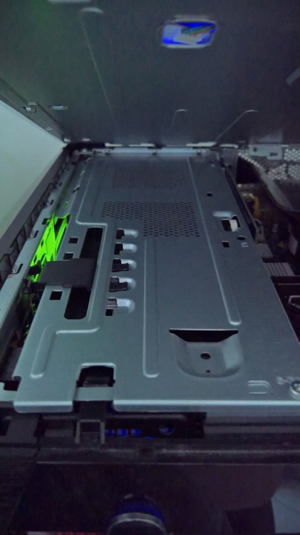 Eine 2,5" SSD habe ich auch drin statt der 3,5" und das DVD Laufwerk ist auch raus. Ach das Gitter hatte eh keinen Nutzen... Als Staubschutz waren die Löcher zu groß, daher habe ich es direkt rausgenommen. -