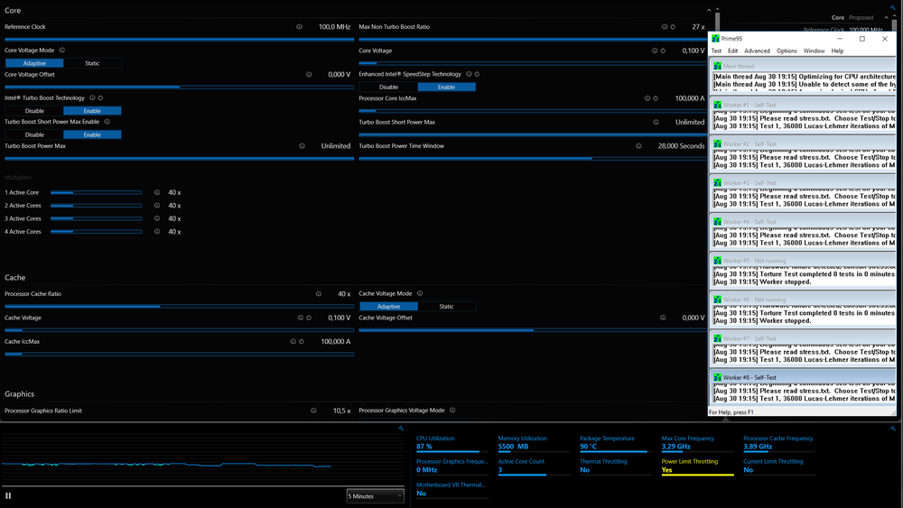 Alienware 17 R4 Power Limit Throttling bei i7 6820HKPur3G4m3 erstellte Thema in Allgemeines & Troubleshooting Hallo liebe AW-Community, mein erster Thread und schon brauche ich eure Hilfe.... Geht ja gut los. Fangen wir am besten gaanz am Anfang an. Vor einigen Wochen habe ich mir gebraucht auf Ebay Kleinanzeigen einen AW17R4 mit i7 6820hk und GTX1080 geschossen. Habe 2K gezahlt und das Gerät ist von Dez. 2016. ProSupport und Zusatzversicherung (London General Insurance von DELL) laufen noch bis Dez. 2017. Soweit so gut. Nun zu den Problemen. Als ich mich ans Testen des Geräts gemacht habe ob denn noch alles in Ordnung ist fielen mir nach einiger zeit die Hohen Temperaturen (bis zu 103C°) sowie Thermal Throttling auf. (Habe dazu in einem Anderen Thread schon einiges geschrieben, wer alles genau wissen will kann da nachschauen) Habe daraufhin beim Support angerufen und es kam auch bald darauf ein Techniker der mir die Heatsink ausgetauscht hat und einen Repaste mit Arctic MX-4 durchgeführt hat. Leider hat das absolut nichts gebracht und die Temperaturen waren danach bei gleichzeitiger benutzung von CPU und GPU noch immer bei 102C°. Habe dann mit DELL vereinbart dass sie das Gerät abholen und in der Werkstatt checken. Gestern habe ich das Gerät zurückbekommen, mit neuem Mainboard, also auch neuer CPU und GPU und neuer Heatsink. Ausserdem war ne weitere Win 10 Lizenz dabei. Also sofort wieder ans Testen ob die nicht das Gerät "Kaputt Repariert" haben... Gottseidank funktioniert anscheinend (Hardwaremäßig) alles sauber. Nur die Temperatuern gehen immernoch auf 95C° rauf und er gibt bei 100% Auslastung EGAL in welchem OC Level "Power Limit Throttling" im Intel XTU aus. Jetzt wirds problematisch Ich wollte das Gerät Undervolten um bessere Temps zu bekommen da ich nur höchst ungern einen Repaste selbst durchführen will (wenn es garnicht anders geht, dann mit LM diesmal) nachdem ich gesehen habe was der Techniker beim Ersten Tausch der Heatsink alles beachtet und gemacht hat um nichts zu zerstören. An dieser Stelle muss auch mal ein Lob an den Support sein. Ich habe so viele Schlechte dinge über den über die gelesen dass mir im Vorraus schon ganz Übel wurde ob denn überhaupt was passiert. Aber Sie haben sich wirklich mühe gegeben und mich wirklich gut Betreut. Hatte auch Immer den selben Herrn am Telefon was sehr angenehm für mich war. Also Dickes Plus hierfür von mir. Heute hab ich mich dann an die Arbeit gemacht und angefangen an der Core Voltage Offset herumzuspielen. Mein Ziel sind eigentlich "nur" stabile 4GHZ bei möglichst geringer Temperatur. Sollte ja zu schaffen sein mit der CPU. Das habe ich im Bios eingestellt: Dann bin ich ins Intel XTU und habe dort folgendes eingestellt: Diese Einstellungen laufen auch sauber, solange nur die CPU in gebrauch ist. Was mich ausserdem etwas stutzig macht ist folgendes: Die Core #2 ist zu jedem Zeitpunkt laut HWInfo ca 20-25 C° kühler als alle anderen. Kann das Stimmen? Müssten bei einer schlecht montiereten Heatsink nicht eigentlich 2 Cores Heißer werden und 2 kühler bleiben? Das ist jedoch nicht das Eigentliche Problem. Sobald ich die GPU zusammen mit der CPU auslaste kommt es zum BSOD. Um dies zu vermeiden muss ich den Offset auf -0.00V stellen. Und selbst hier habe ich das Problem dass die CPU nach ca 10 Sekunden auf 3 Cores läuft und aufgrund des Power Limit drosselt. Die Auslastung geht dann runter auf 75%. Hier oben im Bild sieht man 3.29GHZ, das geht aber runter bis auf 2.6GHZ. Ich habe schon alles was ich weiß versucht aber Kann die CPU nicht vom Drosseln abhalten. Bin am Verzweifeln... Weiß hierfür jemand Hilfe? Bin für alles dankbar. Liebe Grüße, Pur3G4m3