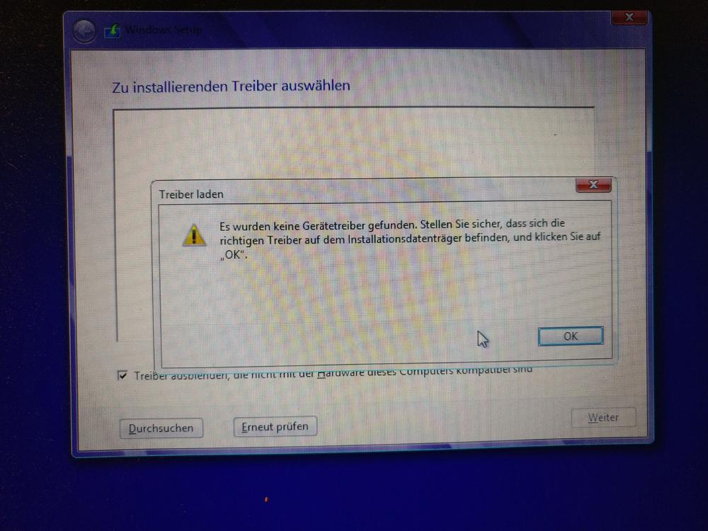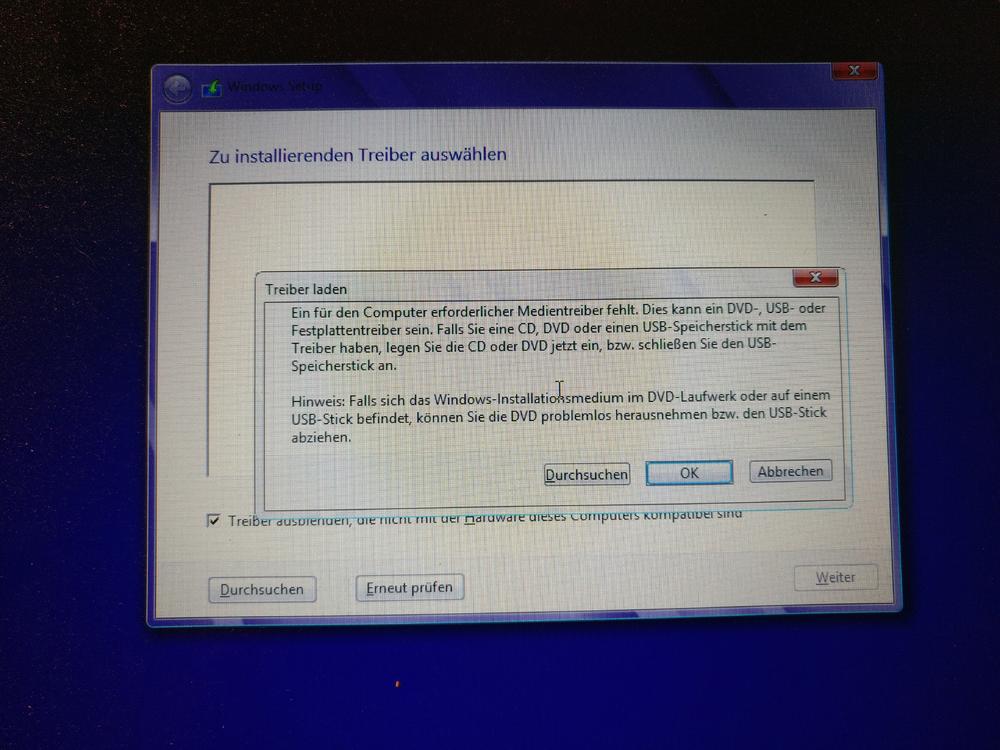 1. Hallo Community Ich habe ein Problem mit meinem nun schon etwas betagteren Alienware17r1. Vor ein paar tagen habe ich beschlossen die kapazität meiner festplatten zu erhöhen und eine Neuinstallation von Windows vorzunehmen. Der Anfang lief ganz Problemlos. Festplatten auswechseln (SATA, M.2) und dann neu starten. Im BIOS habe ich den RAID-mode bereits aktiviert und via Bootoptionen einen RAID0 verbund erstellt... So weit so gut, kein Problem. Wenn ich nun die Dell wiederherstellungs-cd einwerfe um Windows 8 zu installieren, kriege ich zu Beginn der Intallation(nach der Sprachauswahl) folgende Meldung: "Es wurden keine Gerätetreiber gefunden. Stellen sie sicher, dass sich die richtigen Treiber auf dem Installationsdatenträger befinde, und klicken Sie auf OK". Im Anhang findet ihr zwei bilder der Fehlermeldung. Ich habe nun keine Ahnung welche Treiber fehlen und wo ich diese finde. (Installiere ich windows ohne RAID0 im AHCI mode habe ich keine Probleme mit der Installation.) Ich wäre sehr froh, wenn mir jemand mit diesem Problem helfen könnte... (Momentan ist mein Laptop nutzlos:/) Vielen Dank im Voraus