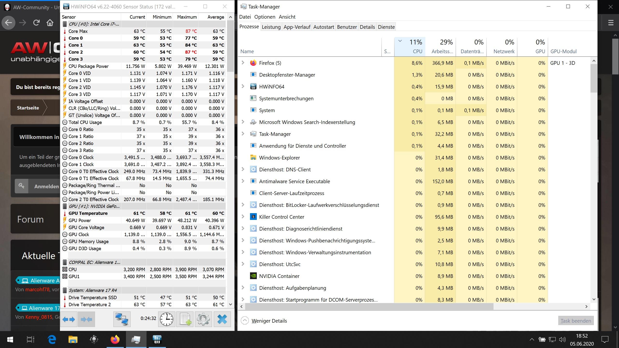 1. Lediglich die aw-community Seite. Bei HWinfo habe ich nur die Portable Version am Laufen. Liegt vielleicht daran.