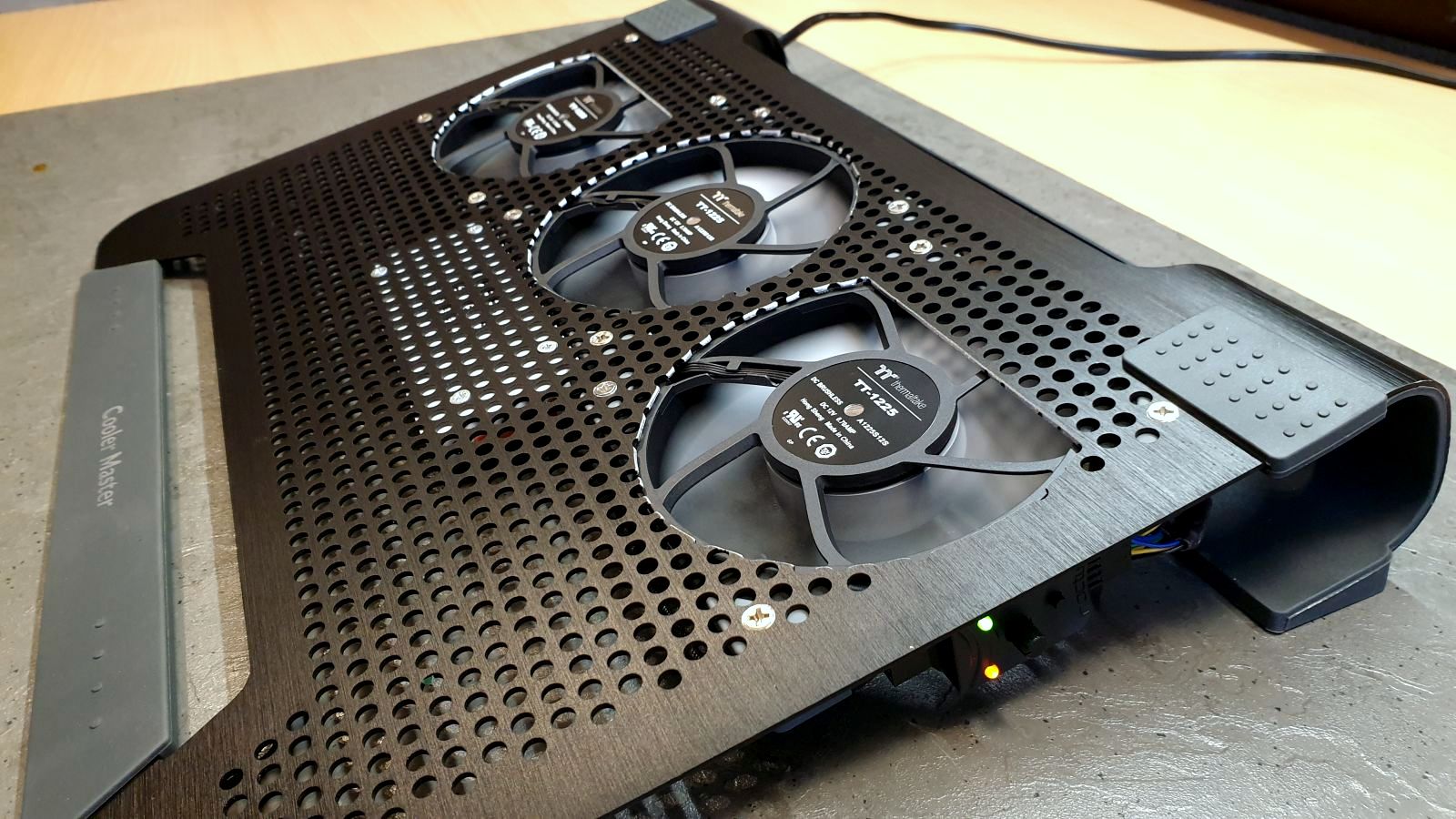 U3-Kühler für 17" AW-Notebooks mit Thermaltake's Toughfan 12. Wahrscheinlich derzeit die einzige Alternative zu Noctua's NF-A12. Qualitativ und optisch wirklich sehr gelungen. (Sorry, Fotos sind leicht überbelichtet durch die Werkstattbeleuchtung) Für diejenigen, die sich wundern. Ich poste den U3-Kühler immer, sobald ich andere Lüfter oder dergleichen ausprobiere. So kann man sich in Zukunft alle Variationen hier im Thread in Ruhe angucken. Detaillierte Zahlen, Temperaturen, Lautstärke usw. werden demnächst noch kommen.