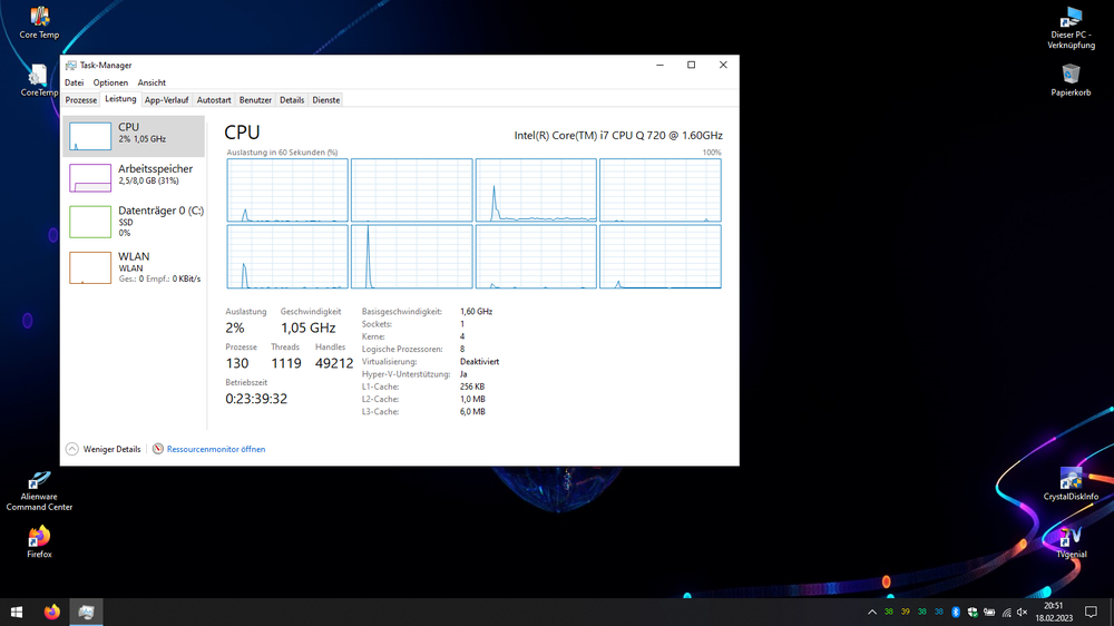 CPU ist ein Intel Core i7 Q720 1,60 GHz, GK ist eine Nvidia GeForce GTX 260M so, schreib jetzt auf dem M15 weiter, vorher PC, ich lasse gerne führerstandsfahrten bei YT mitlaufen, da kann man u.a. testen, was eine kiste kann. laufen jetzt auf dem M15 seit drei stunden, und die tempereatur ist top. bin also rundherum zufrieden.😀 komisch, wie kommt ein teil meines gestrigen post hier rein? -