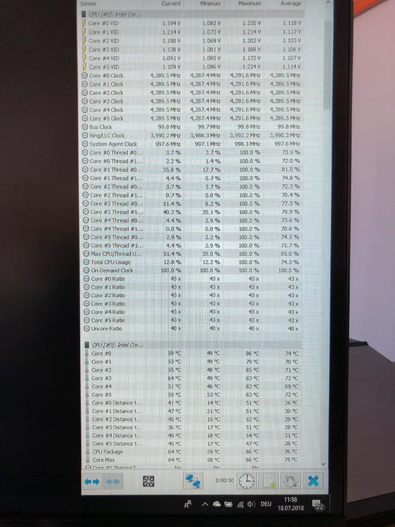 21. Kenne mich mit Prime nicht so aus aber was ich gemacht habe jetzt auf die schnelle Cinebench ein paar mal durch mit dem HWInfo: Und den 3d Mark combi Stress Test 5 Min laufen lassen: Ich lasse das Gerät auf 4,3ghz laufen (mit - 0,145 V ) da mir das dicke reicht und im Silent Profil das er schön ruhig ist ? (allein dafür lohnt sich das schon xD ) Habe das Gestern beim zocken 4 Stunden getestet, das lief sehr stabil und sauber und sogar kühler habe TESO gespielt und da waren die Temps von GPU knapp auf 50-55 Grad und CPU so 76-82 Grad