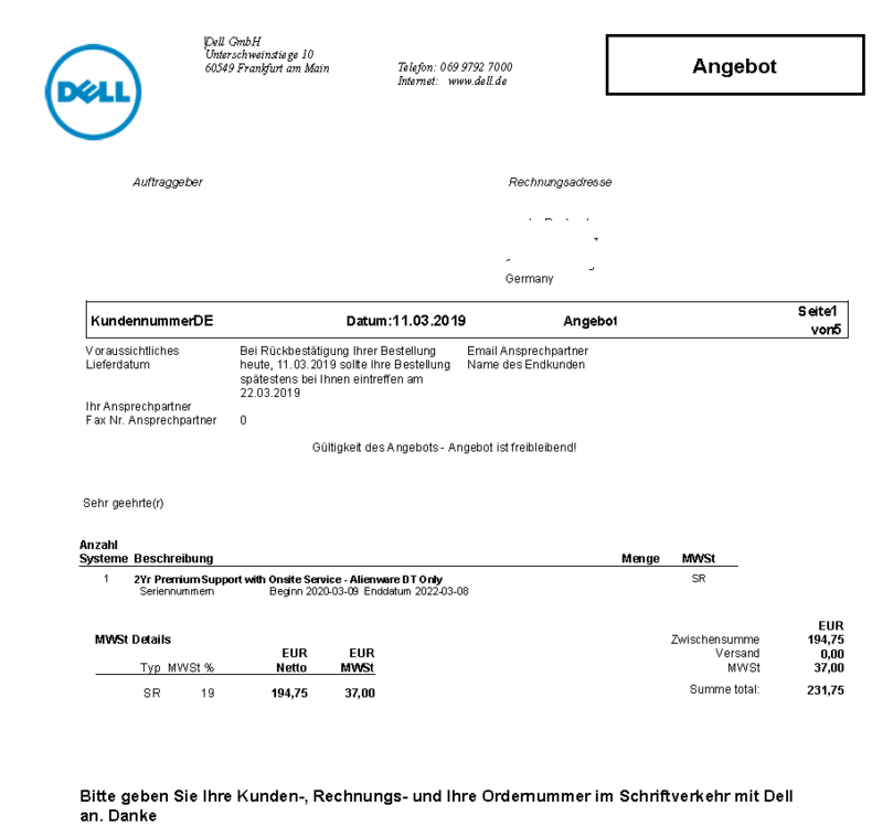 der service tag steht drin, den habe ih raus editiert, aber ich gleiche den direkt ab wenn das notebook dann kommt aber danke für den hinweis! 0800 201 3355 hab mich dahin verbinden lassen, der Bearbeiter war: ****** ******, vielleicht kann man sich ja zu ihm verbinden lassen. hab so frech wie ich war ;D natürlich noch nach einem Preisnachlass gefragt, war leider nicht mehr möglich er musste aber nachfragen, hat mich dann 5 min warten lassen. ABER, was bedeutet das Alienware DT only? -