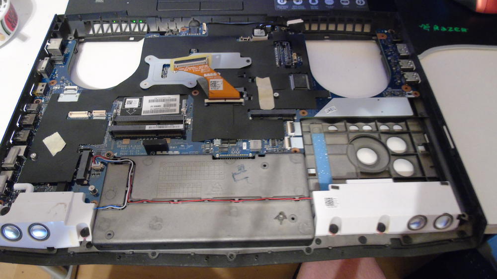 Es lebt wieder.,.. Guten Morgen. Ja, es lebt wieder, Bilder unten. Gerade installiere ich Windows im UEFI Mode neu, zuvor habe ich alle im Windows Setup Mode gelöscht und neu erstellt. Müssten dann ja alle GPT sein...? So bin ich dann für alle Fälle der Grafikkarte und auch ev. Monitor Upgrade auf 120 Hertz gerüstet. Apropos Graka. Ich habe gestern mal die GTX1070m gegoogelt. Sie hat einen maximalen Stromverbrauch von 115 Watt. Der MXM3.0b Slot in unserem M17xR4 liefert 125 Watt, daher sollte das zumindest gehen. Ich habe aber irgendwas im Kopf, dass für ab der GTX1060m, also auch GTX1070m der Kühlkörper "gedremelt" werden muss. Jedenfalls bin ich saufroh, dass es wieder läuft. WICHTIG: Letztes Bild, was ist das, das Kabel was da liegt und auf dem Board eingesteckt ist...? Bilder: -