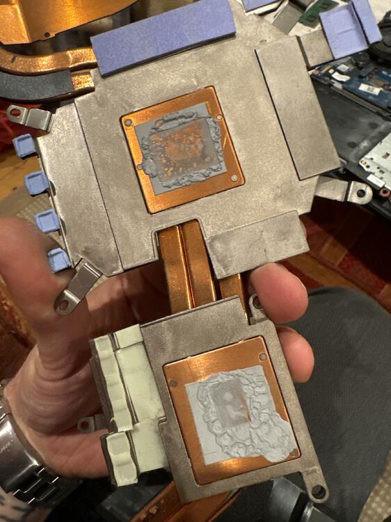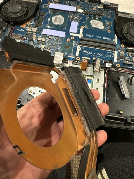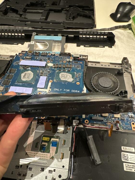 Hi AW-Fans und Cracks habe mir vor kurzem ein Alienware 15 R3 gebraucht gekauft, optisch und generell macht es einen Top Eindruck. Specs: i7 6700HQ, GTX 1070, 16 GB RAM, 256GB SSD + 1TB SSD Windows 10 war komplett zurück gesetzt. Also erstmal aktuelle Treiber installiert und zwei Games. Days Gone und Hogwarts Legacy. Soweit so gut, aber ich merkte schnell, dass irgendwas ganz und gar nicht stimmen kann. Die Performance in beiden Spielen ist total unterirdisch. Days Gone, egal in welchen Auflösungen und Grafikeinstellungen: vielleicht mal 50 fps. Das Problem sind aber extreme Ruckler und permanentes Stottern, es ist praktisch unspielbar. Lautes Aufdrehen der Lüfter und extreme Hitze. CPU schnell and die 100° in die Spitze bei aber nicht voller Auslastung, bzw. es ist eher ein Auf und Ab. GPU rennt auch mal bei 85-90° Einen Benchmark Test (Demo, Timespy) habe ich durchlaufen lassen, Ergebnisse waren nicht berauschend, aber auch nicht extrem schlecht. Habe dann erstmal ein paar andere/ältere Treiber direkt von Dell getestet. Keine Änderung. Was ist mir noch aufgefallen: - Der Akku ist etwas aufgebläht, den werde ich wohl als erstes ausbauen bzw. einen neuen beschaffen. (Hat aber mit der Performance, denke ich weniger zu tun?) - die beiden Lüfter waren schon ziemlich verstaubt, erstmal grob gereinigt: Aber auch dadurch keine Verbesserung... Jetzt ist erstmal meine nächste Überlegung, das Teil zu zerlegen, von jeglichem Staub zu befreien und CPU und GPU zu repasten. (Würde dafür jetzt TG Kyronaut verwenden). Hab das zwar noch nie bei nem Laptop gemacht. Aber ich glaub, ich versuch das einfach mal. Was meint ihr? Eine gute Idee, bzw. habt ihr ein paar weitere Ideen, was ich testen kann? Steh echt aufm Schlauch. Das Gerät ist ja grad mal 7 Jahre alt. Und lt. Vorbesitzer lief es recht gut mit z.B. Star Citizen. Freue mich über Antworten und Hilfe!