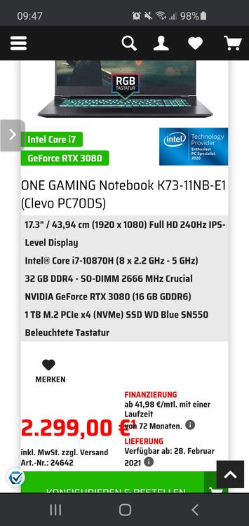 Spannende Hardware Zeiten Endlich gibt es mehr Oled Displays in Notebooks und amd cpus bilden die spitze. Preise sind auch wieder günstiger geworden bei den High End Modellen. Jetzt muss nur noch amd die mobile gpus bringen und der fight kann losgehen. Mein Wunsch wäre Area51m mit 5950 3080 maq q und oled 17 Zoll 120hz qhd.