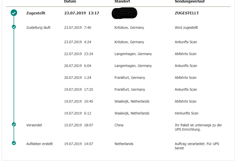 3.07. Abends bestellt---23.07 Mittags geliefert