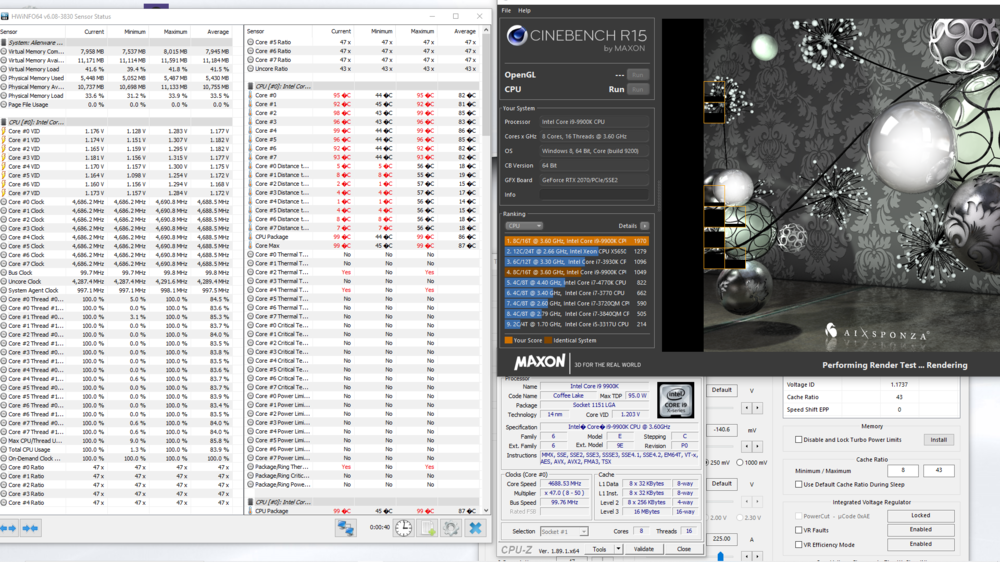 Ähh, hab ich doch. Siehst doch an der Spannung. Habe ne hohe Vid und nen UV mit -140mV gemacht. Raumtemp ca 27°c Ich kann den 9900k schwer einschätzen. Meine erste Intel seit ner Weile. Der letzt war nen 6700K. Im Desktop hab ich nu nen 2700x und der hängt an nem MoRa3 -