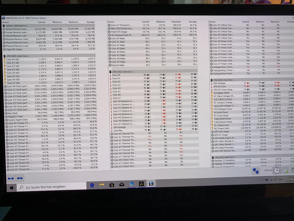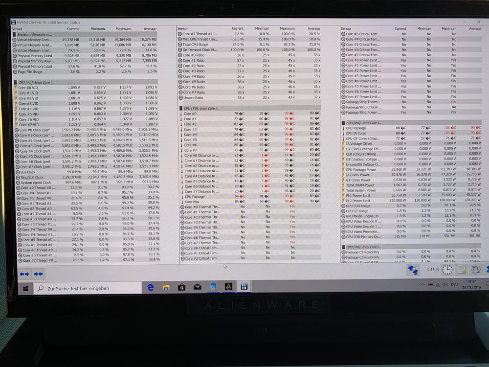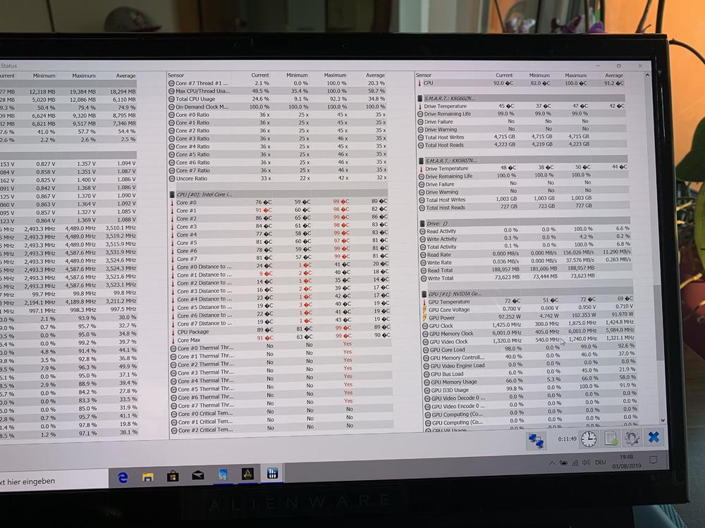 @CMMAP: Ja Notebook ist erhöht und hat nach unten Luft. Screenshot ist von Assasins Creed mit 0,140 undervolt . Selbst da kommt es auf das Setting an. In diesem knapp 4,1. Ist halt wirklich von Spiel zu Spiel unterschiedlich. Im Schnitt bei Spielen 80 Grad bei durchschnittlich 4,2-4,3 ghz. Gibt aber immer peaks bis 100 Grad. Und gesamt Temp manchmal im Schnitt 80-90 Grad. Wichtig: Das ist ohne overclock der gpu was ja im command Center noch möglich wäre. Denke insgesamt ist das ok und Notebook sollte so ein paar Jahre halten oder was meint ihr? Von der Spiele Leistung und Optik bin ich sehr zufrieden. Wenn es nur um Leistung ginge hätte ich den 51m oder desktop geholt. Kommt halt darauf an was man möchte. -