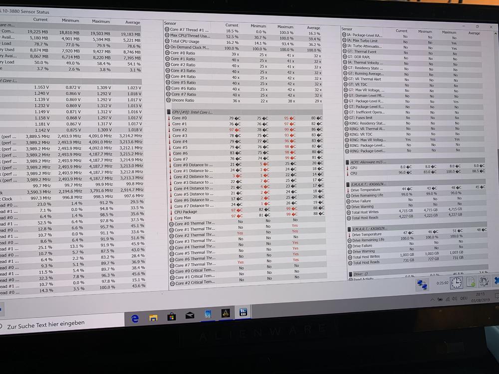 Mal ein kleines Update. Notebook läuft bei den meisten Spielen ohne Tuning mit 4,1-4,3 ghz bei durchschnittlich 80 Grad. Bei anspruchsvollen wie assasins creed etwas höher. undervolt funktioniert bis -.130 auch ohne Probleme. Bringt dann auch noch ein paar Grad aber nutze ich bislang nicht. Beim normalen surfen usw macht er in der Regel 4,5-4,6 ghz bei 60 Grad. Mit overclock ist er dabei auch schon mit 5,08ghz gelaufen. Dies aber nicht bei großen Forderungen der cpu. Bin weiterhin sehr begeistert was das schnuckelige Ding kann. Werde meinen definitiv behalten. War die richtige Entscheidung bei der derzeitigen Auswahl. Hätte es den 51m mit oled gegeben wäre es dieser geworden. So bin ich aber mit dem m15r2 auch sehr zufrieden. Die 16 gb reichten bislang auch immer. Mache aber auch keine aufwändigen Bildbearbeitungen oder ähnliches. -