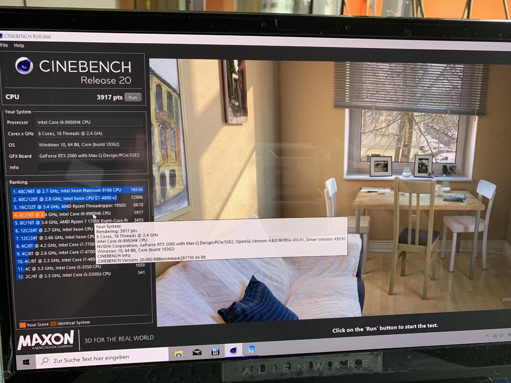 Kann ich heute Nachmittag nach der Arbeit machen. Muss mir cinebench 20 nach installieren. Was ist da dein Wert damit ich einen Anhaltspunkt habe? Danke für das Angebot wegen repaste. Komme Ich evtl darauf zurück. Soll bei dem m15r2 aber wohl schwieriger sein. -