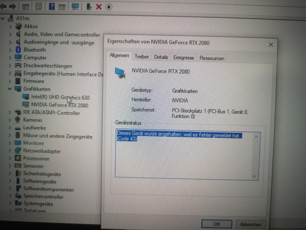 Ich Reihe mich hier mal mit ein. Gestern beim Eso spielen (50% Auslastung / <60°C) hat sich meine RTX 2080 (so halb?! ) verabschiedet. Sie wird zwar im Gerätemanager erkannt, aber taugt halt nix... S. Bilder Es sollte erwähnt sein, dass hier stets alles aktuell gehalten wurde & auch nie im OC Betrieb war ... Das VBios war schon ab Werk bei 180w & nie höher als das von Dell Upgedatete Templimit 74/75°C überschritten. Nach 4 Monaten Erhalt war die Soundkarte/Mainboard defekt (August '20) & jetzt (nach weiteren 4 Monaten) die GPU Nicht das, was man sich beim einem Alienware erhofft... Tech support kontaktiert, die übliche einstündige Telefon-"Therapiesitzung" vollzogen & ja, sofern verfügbar, erfolgt ein zügiger Austausch. Äußerst doofer Zeitpunkt wieder mal xD Wünsche euch allen einen guten Rutsch & ein besseres Jahr 2021. Gruß Mylo