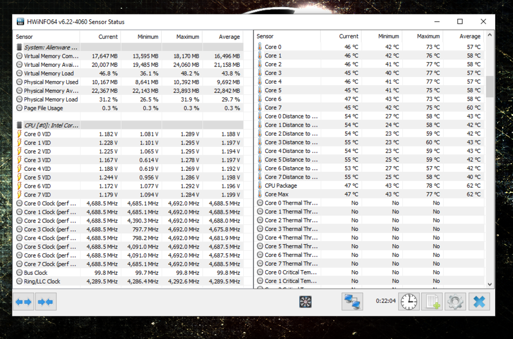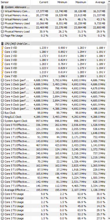 19. Hallo nochmal Habe mal ein paar Screenshot von HWInfo gemacht. Gezockt habe ich Apex Legends auf Max Settings. Die ersten Screenshot sind vor dem zocken und die anderen 15 - 20 Minuten im Game. Jetzt die Bilder von während dem zocken.