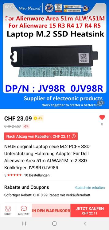 12. Danke für den link. Es gibt aber welche mit so einer kleinen Ecke zum einhacken im Slot. (Siehe link) Diese suche ich. https://www.google.com/url?sa=i&url=https%3A%2F%2Fwww.aw-community.com%2Fforum%2Ftopic%2F9505-ssd-heatsink-f%C3%BCr-area51m%2F&psig=AOvVaw0c-p1ufGeOJaQyrF1YuLI9&ust=1585390779228000&source=images&cd=vfe&ved=0CAIQjRxqFwoTCOjB1IO3uugCFQAAAAAdAAAAABAF