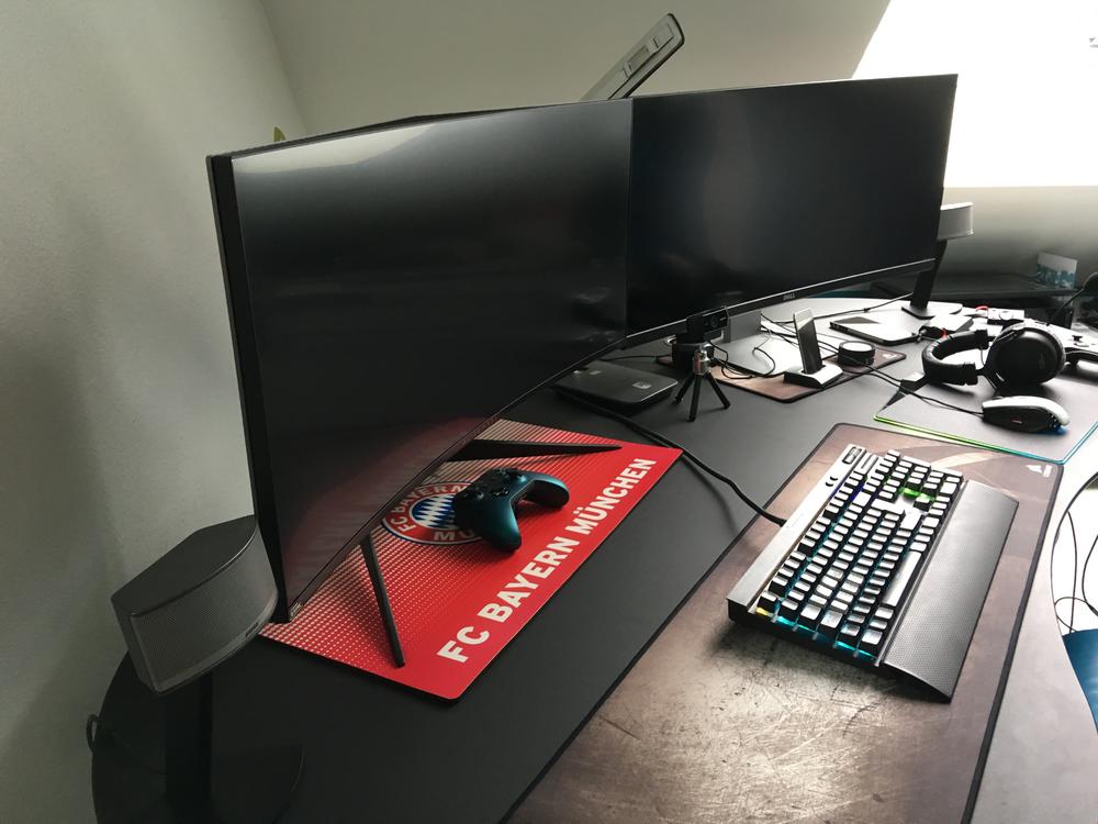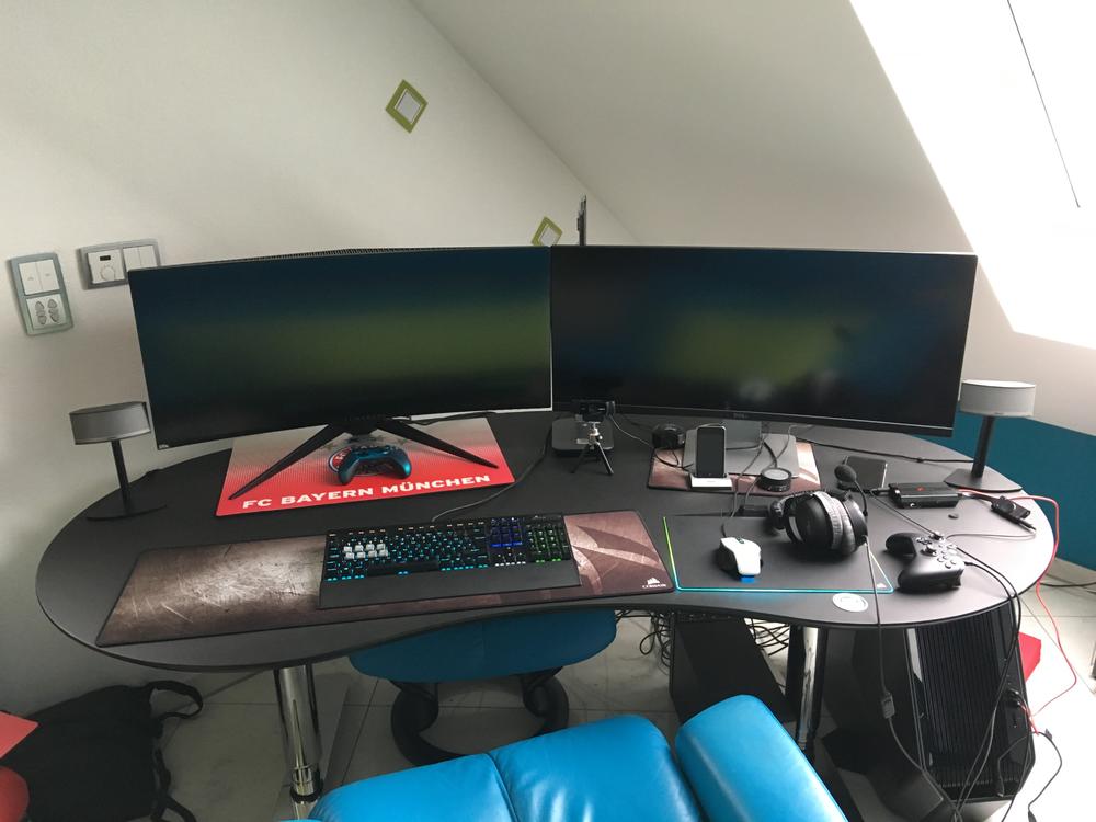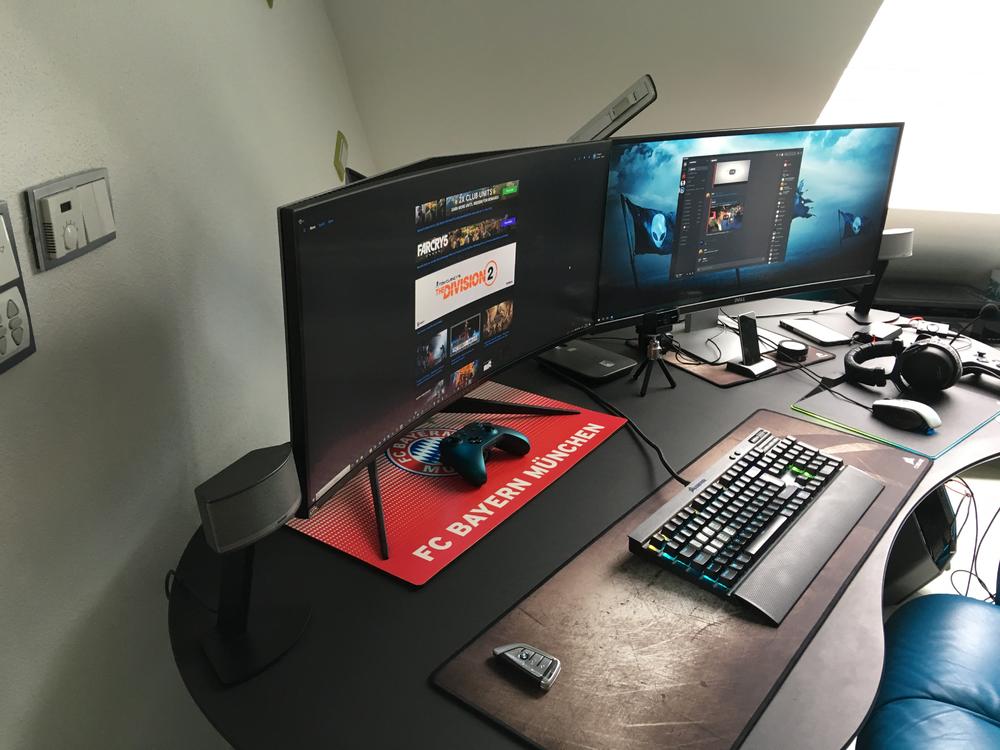 Hey Community, seit mehreren Monaten habe ich den Alienware Curved Monitor AW3418DW bei mir. Der Monitor hat meinen 27 Zoll FHD Touch Monitor von Dell ersetzt. Der Dell UW3415W Monitor ist nun mein 2. Monitor. Ich wollte schon vor längerer Zeit einen Erfahrungsbericht dazu schreiben, habe es aber zeitlich nie wirklich geschafft. Dies möchte ich nun nachholen. Bestellt habe ich den Monitor über Dell mit 5 Jahren Support. Die Lieferung erfolgte innerhalb von 2 Tagen, der Karton war gigantisch (ähnliche Größe zum Area 51 R2). Verarbeitung und Design: Der Monitor macht einen klasse Eindruck, das Design ist typisch Alienware. Der Monitor insgesamt ist relativ klobig, das liegt v.a. am riesigen und massivem Fuß. Die Krümmung ist um einiges größer al beim U3415W Monitor, was zum einen beim Spielen angenehmer ist und den Monitor von der Länge her um ca. 1cm verkürzt. Lichthöfe sind vorhanden, v.a. einer im rechten unteren Eck. Anfangs hat es mich ein wenig gestört, allerdings nehme ich diesen nun gar nicht mehr wahr. Dell hatte mir die Rücknahme oder einen Nachlass angeboten, ich habe mich für letzteres entschieden. Die Tasten am Monitor sind relativ gut erreichbar und haben einen guten Druckpunkt. Wesentlich besser als die Sensorleiste bei diversen anderen Dell Monitoren. Das AlienFX lässt sich am Monitor in diversen Farben einstellen. Auch hat man wieder die altbekannten verschiedenen Zonen. Display: Der Monitor läuft problemlos mit übertakteten 120 Hz. Die Einstellmöglichkeiten sind in Ordnung. Von den Farben war ich anfangs enttäuscht. Es wirkte alles blass, "milchig" und rötlich. Erst durch eine Kalibrierung kann man die tolle Farbvielfalt genießen, konkret bei mir laut Kolorimeter 100% sRGB und 88% Adobe RGB. Ein Unterschied wie Tag und Nacht. Gaming: Das wohl wichtigste Feature ist G-Sync. Beim Umstieg von 60 Hz auf 120 Hz und dann noch G-Sync gibt es nur ein Wort: Wow! Auf so einen Monitor habe ich sehr lange gewartet. Selbst Spiele in unter 60 FPS sehen gut aus, auch wenn man natürlich einen Unterschied zu 120 FPS sieht. In den Meisten Spielen erreiche ich problemlos 80-120 FPS, bei Spielen wie Assassins Creed Origins nur ca. 40 FPS, da kein SLI Support. Alles in allem bin ich sehr zufrieden mit dem Monitor und kann ihn nur empfehlen. Wenn man ihn erstmal richtig eingestellt hat, erhält man ein ganz neues Gaming Erlebnis. Der Preis ist allerdings hoch. Zusammenfassung: Pro: + Design + Verarbeitung + Größeres, aber nicht übertriebenes Curved Format + Alien FX + 120 Hz Übertaktung + Tolle Farben nach Kalibrierung + G-Sync Contra: - Riesiger und schwerer Fuß, passt nicht auf jeden Tisch - Ab Werk miserabel eingestellt - Lichthöfe - Erfordert sehr starke Hardware und High-End GPU(s) für volle Leistung - Preis