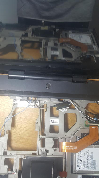 Hallo AW Community, Ich habe zurzeit Zuhause einen m15x rumstehen der nicht mehr anspringt. Wenn der Akku drinnen ist und ich versuche es anzumachen leuchtet das Alienware Logo Orange auf und es passiert rein garnichts. Manchmal blinkt es auch langsam. Beim Netzbetrieb mit Akku, leuchtet das Alienware Logo in RGB Farben durch und beim betätigen des Knopfes passiert rein garnichts. Beim Netzbetrieb ohne Akku leuchtet das Logo kurz blau auf und geht dann wieder aus. Beim betätigen des Knopfes geht das Logo wieder an und erlöscht dann nach 2 sec wieder. Dann passiert rein garnichts. Habe dann vermutet dass das Mainboard beschädigt ist, da der Vorbesitzer auch meinte das er immer anspringen wollte und das er erstmal "warm" werden müsste weshalb er mit seinem Fön bei den Startversuchen immer von unten Hitze abgab und anscheinend half dies und das Notebook sprang an. Jedoch passiert nun bei mir angekommen nichts mehr. Heute habe ich dann das Notebook auseinandergeschraubt um das Mainboard anzuschauen. Jedoch sieht es für mich so aus als wäre das noch okay. Beim auseinanderbauen ist mir aber aufgefallen das die Platine unter dem Alienware Logo (bei der Tastatur) ziemlich komisch aussieht. Habe hier mal ein Foto reingepostet. Könnte es vielleicht da dran liegen oder doch am Mainboard? Das 3. und 4. Bild ist vom Mainboard, habe ein paar Plastikabdeckungen entfernt zur Veranschaulichung. Konfiguration Alienware M15x intel core i7 720qm Intel Hd graphics / Grafikkarte ausgebaut 500gb hdd 4gb ddr3 RAM Freue mich über jede Hilfe, bin neu hier. -