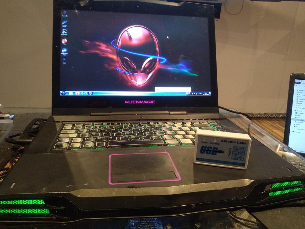 – M15x -- Habe mich doch entschieden den Flash durch zuführen und wollte ich euch Step by Step berichten wie ich zum Erfolg kam …. Keine Ahnung ob meine Vorgehensweiße richtig ist , kann nur sagen MEIN AlienFX Beleuchtung funktioniert wieder wie man auf Bild erkennen kann. Mein System wo folgendes Problem auf getretten ist .. --- Framework Error .. --- nicht installiertes USB Gerät .. System: Alle Treiber sind Installiert !!! Bios --- A08 Command Center A07 R272621 OSD A05 R302355 Was wird benötigt : 1 x Silicom Laps Debug Adapter C8051F MCU 1 x Flash Software Silicom Laps Flash Utility ( Free Download Silicom Laps Seite ) 1 x Molex Stecker ( Micro 6mm ) Dump Flash Datei Code_M15x_R1 Vorgehensweiße wie es bei mir HELL wurde. Deinstallation Command Center ALLE Versionen !! Im Windows System ( Einstellung etc. ) Deinstall. Command in Regedit --- HKEY_LOKAL_MASCHINE --- Software --- Alienware Ordner Komplett löschen..... Deinstall. Command in Computer --- Lokal Disc --- Programme --- Alienware Ordner löschen.... Deinstall. Command in Computer --- Lokal Disc --- Dell --- Treiber – R272621 Löschen. Deinstalllation OSD ALLE Versionen !! Im Windows System ( Einstellung etc. ) Deinstall. OSD in Computer --- Lokal Disc – Dell – Treiber – R302355 Löschen. DOWNGRADE BIOS A08 auf A05 …. soweit gut ? Wir Installiern jetzt Command Center R232274 Wir Installieren Jetzt OSD R232294 Jetzt müßte kein Framework fehler da sein . Genauso das im Geräte Manager alle Geräte installiert sind ( Vorher Usb Gerät nicht installiert ) Im AlienFX Test leuchten LED Rot --- Kein Board ist erkannt .. Debug Verbindung von Rechner an M15x service Port ….. Software Silicom Laps Flash Ulitiy starten …. Auf Reiter Connect/Disconnect gehen Connect drücken Verbindung steht !!! Auf Reiter Download HEX File/Go/Stop gehen Dump Datei Code_M15x_R1 in Download/Filename laden. 000000 in Text file start address ( HEX ) eingtragen . Hacken bei Erase all Code Space before download setzten. Download Button drücken Verify Download Button drücken Go drücken Es werde Licht Ich hoffe das es bei jedem geht , es wäre euch zu wünschen …. code_m15x_r1.hex R232274.exe R232294.exe