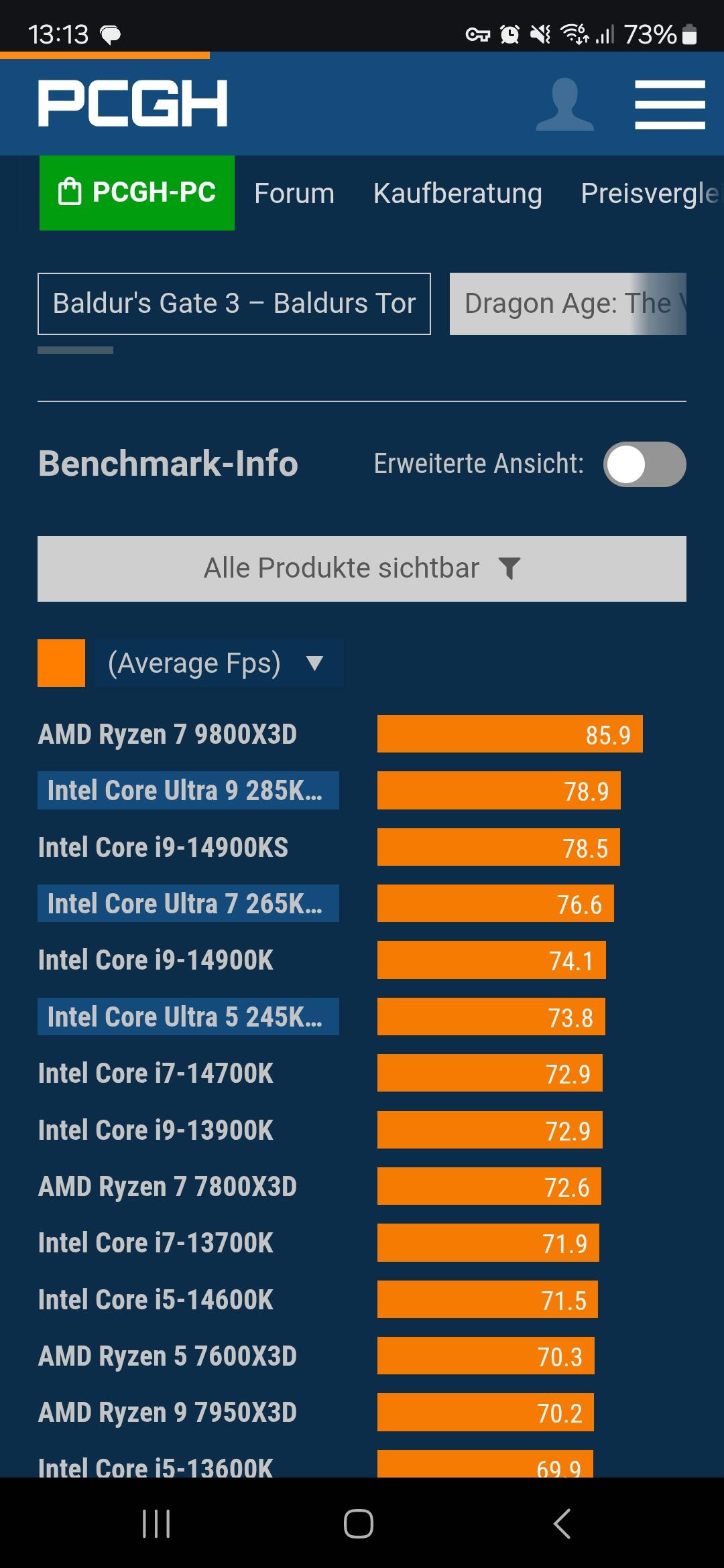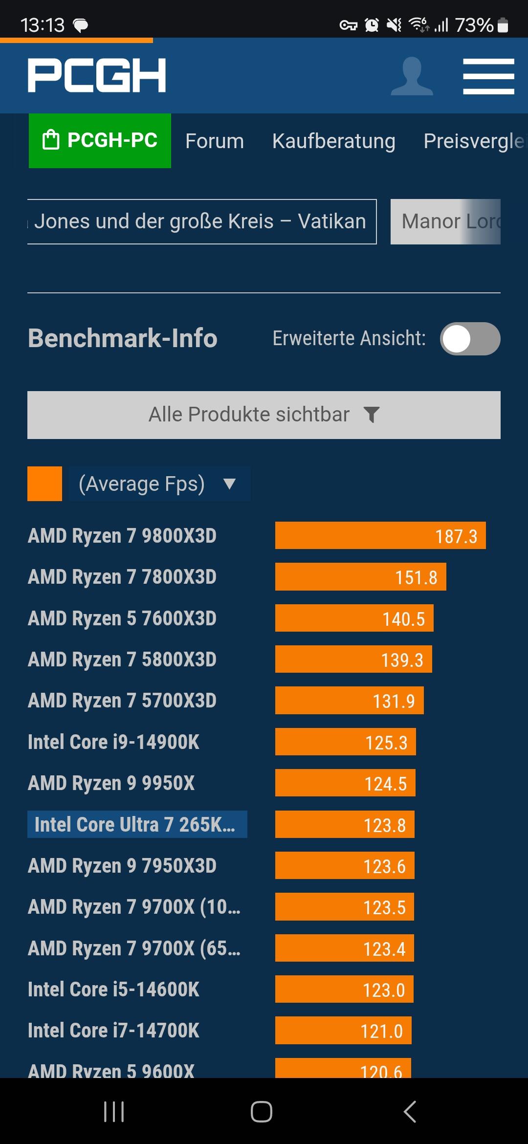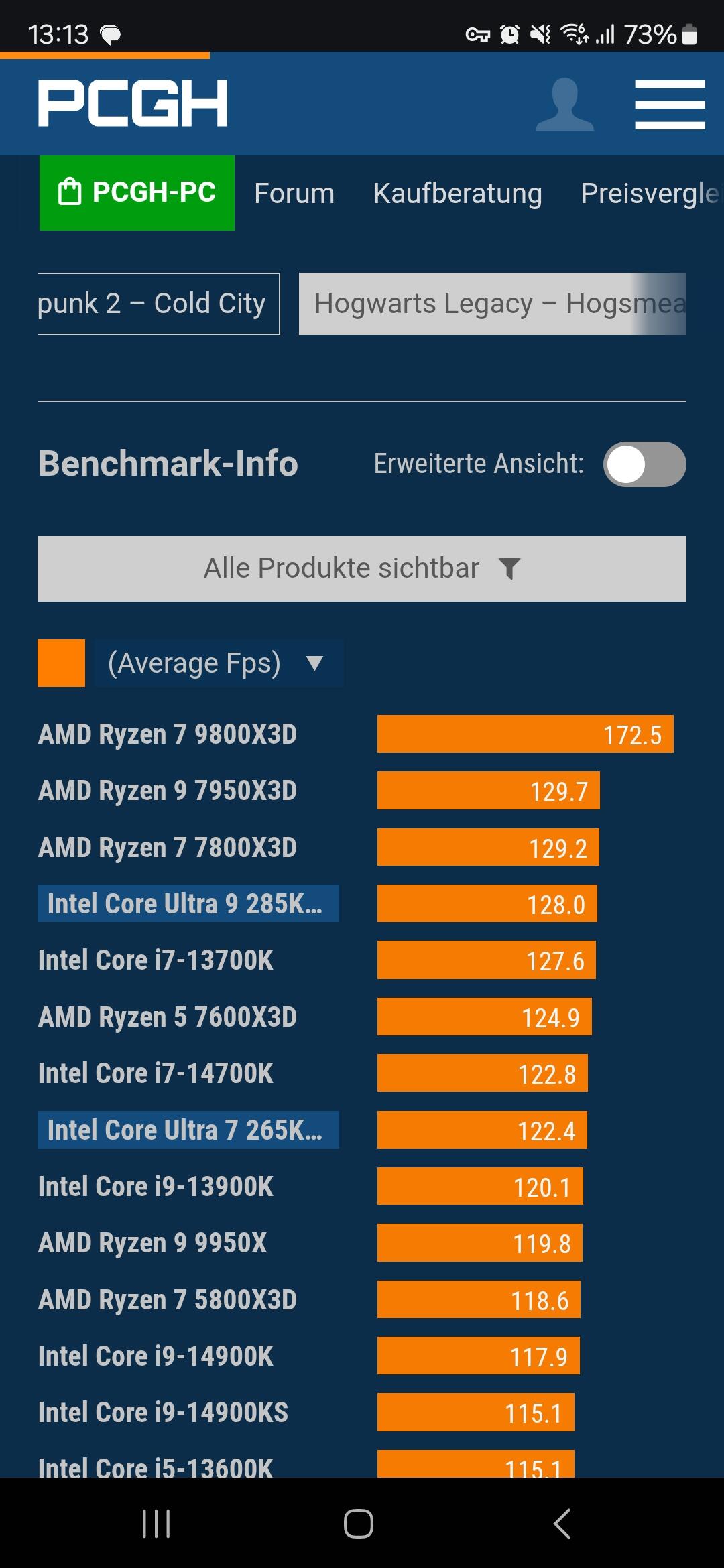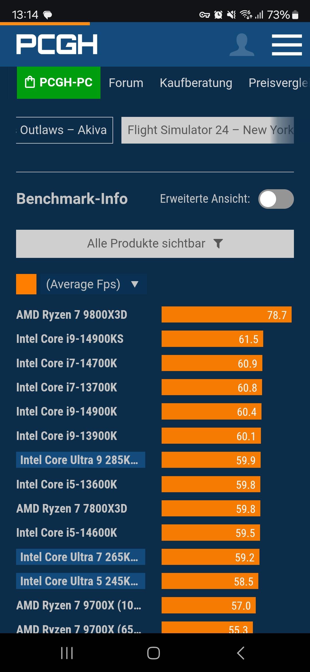 Alle weltweiten Tests belegen das der 9950x3d/9800x3d mit günstigem 6000ram deutlich führt. Ich hab noch keine tests gesehen bei dem ein 285k im gaming annähernd an die x3ds ran kommt..Oc ist natürlich auch mit den x3ds möglich. Nachfolgend ein System bei csl mit günstigem Mainboard