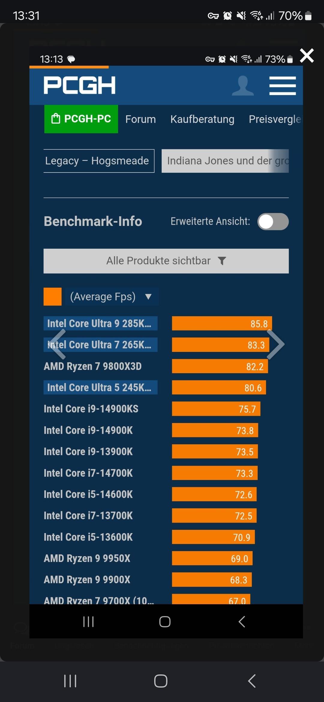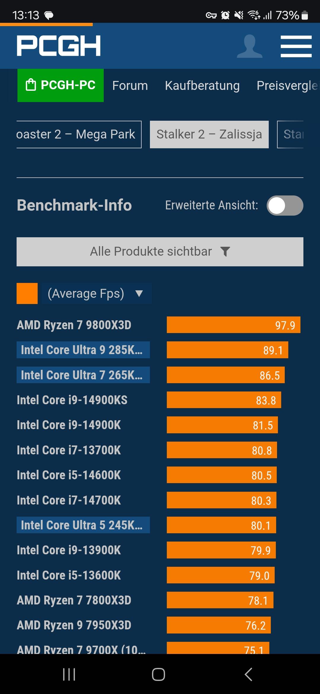 Wie schon oben geschrieben, ich wette wenn vor dir ein PC mit 285k und ein weiterer mit einem 9950X3D steht und beide die identische Game Szene laufen haben, dass du unter Garantie ohne FPS Counter nicht sagen kannst was AMD und was Intel ist und beides gleich gut aussieht. Weil es schlussendlich einfach egal ist. Solange die CPU nicht die GPU bottleneckt ist es kein Problem. Beide Hersteller haben ihre Daseinsberechtigung und beide haben Vor- und Nachteile.