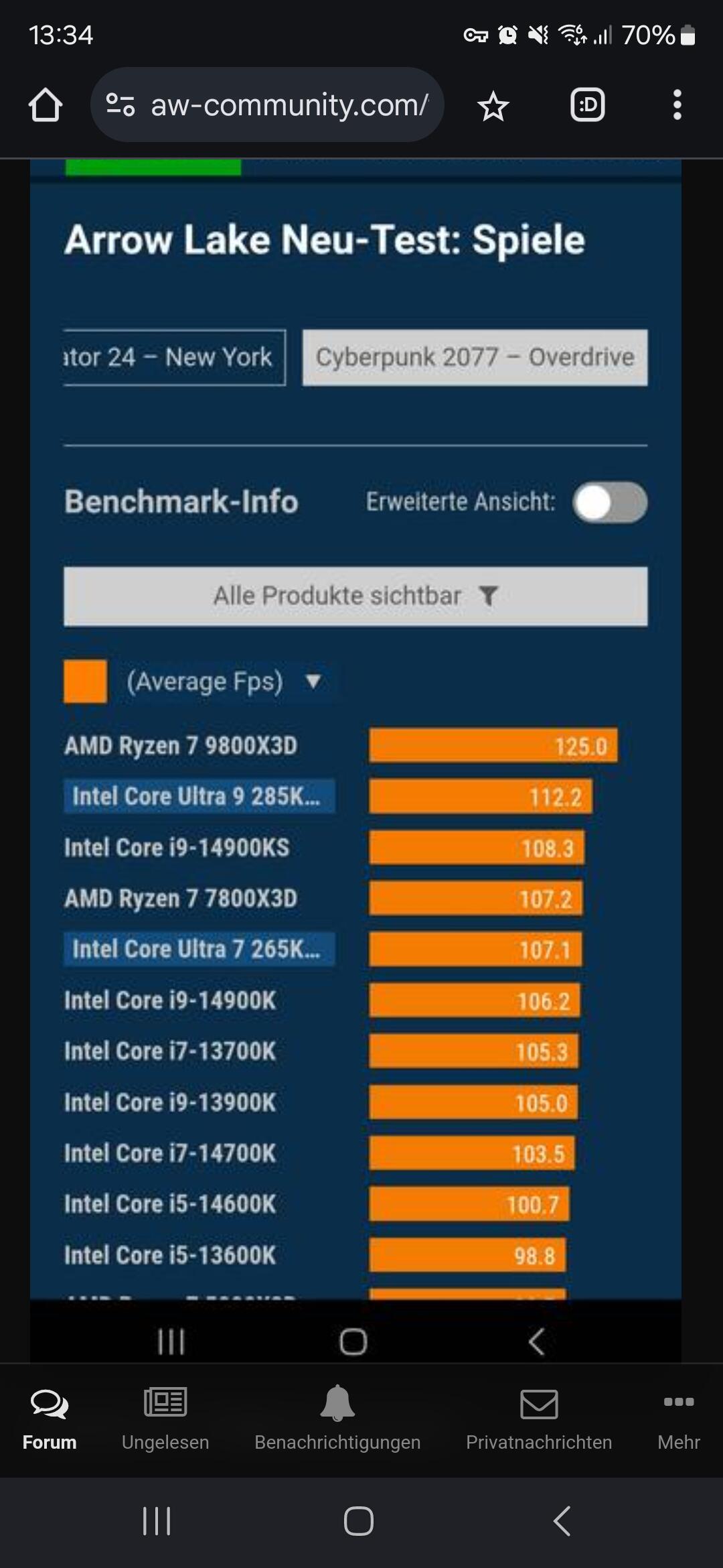 Edit: Nutze weder DLSS noch FSR oder sonst welche Upscaler/Fake Frames, da siehts Spiel immer schlechter aus und performt ruckeliger. Und es sagt niemand die X3Ds sind schlecht. Ich frage mich ja sowieso warum die Dell nicht mit anbietet. Aber so schlecht wie der Core Ultra dargestellt wird, ist er bei weitem nicht. Und ob ich jetzt 7% mehr FPS habe aber eh schon im 120/144 oder whatever FPS Limit mit Gsync bin...merkst selbst. Im echten Leben siehst und spürst du garantiert nichts davon. Wenn dir jetzt einer nen 285k und nen 9950x3d nebeneinander hinstellt, wirst du ohne FPS Counter nix sehen.