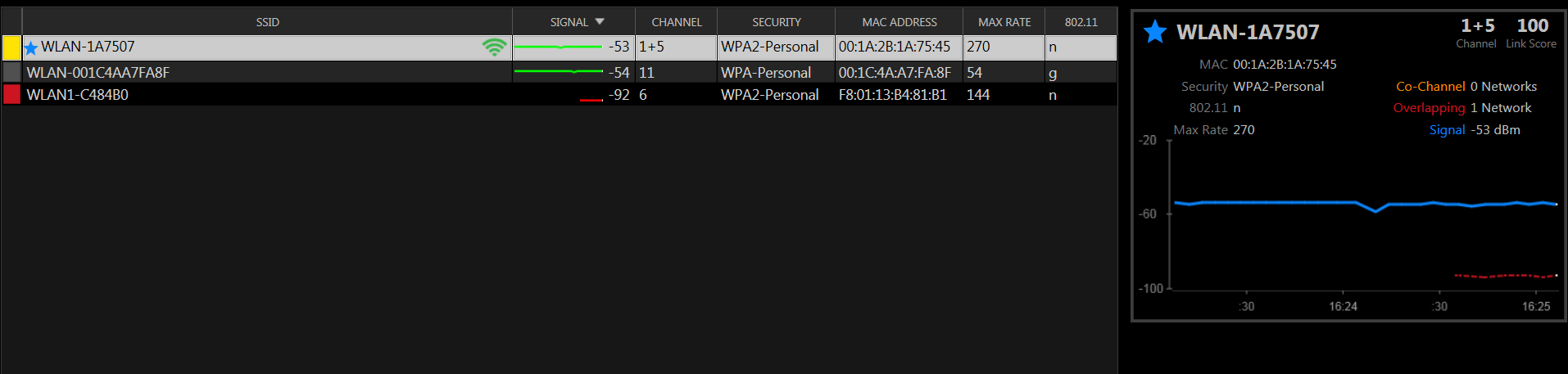 Auf die Balken von Windows kannst du eh nicht gehen. Da habe ich auch 4. Die DB sind ausschlaggebend. Ich habe z.B. -52db, was ein guter Wert ist wenn man bedenkt wo das Signal durch muß.