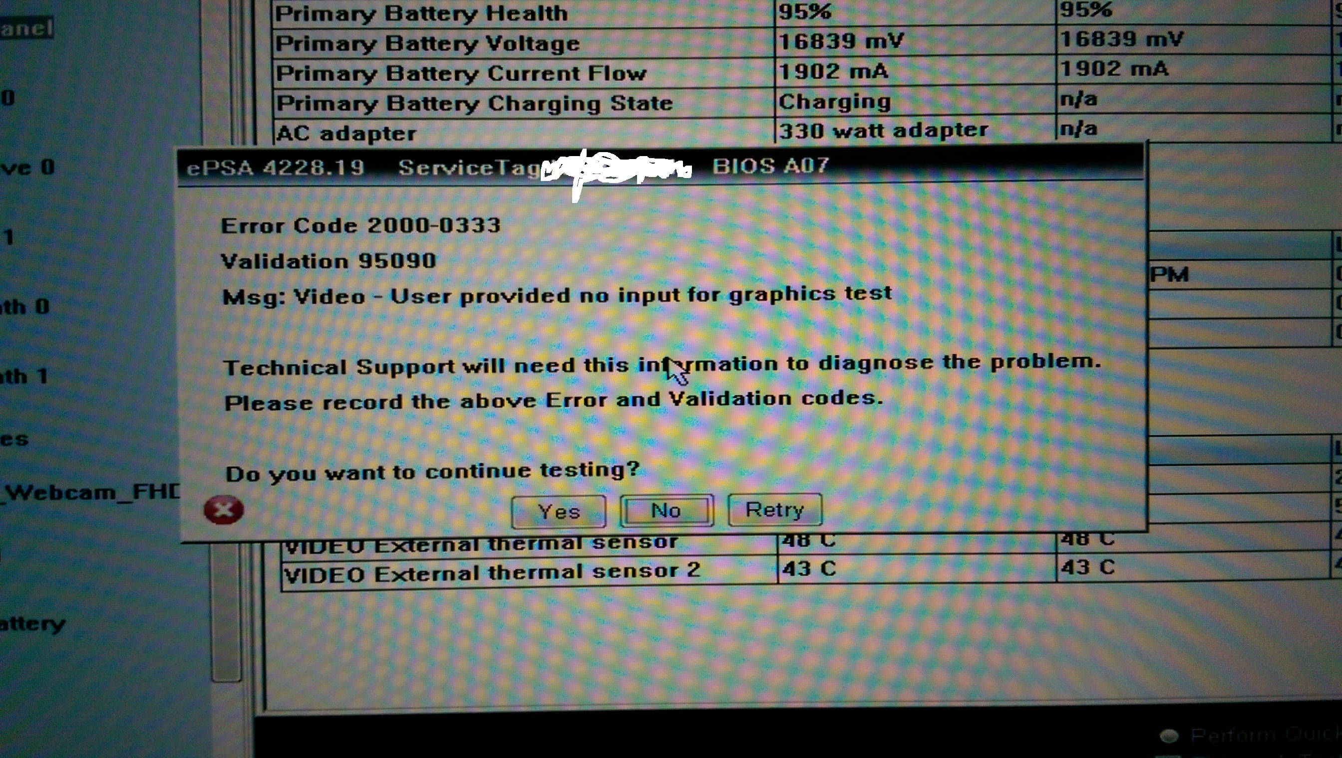 Ich habe nun den Grafikkartentreiber neu installiert, danach habe ich das Diagnostic-Programm durchlaufen lassen und folgender Fehler (siehe Foto) spuckte es aus.