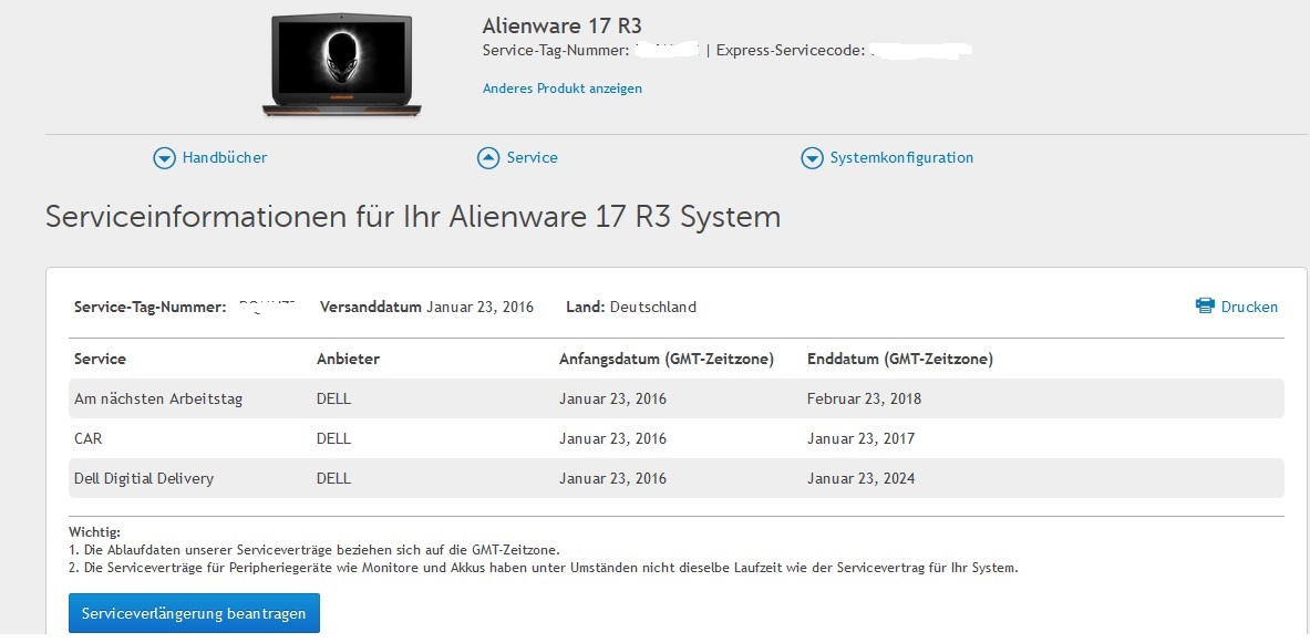 Beim längeren zocken gestern hat sich mein Lüfter quietschend zurück gemeldet, diesmal ausgiebig und extrem störend. Werd am Montag den VOS beanspruchen. Da ich bei Cyberport bestellt habe, musste ich mich gestern erstmal bei Dell reggen und war ziemlich überrascht. Ich habe noch 721 Tage VOS übrig.