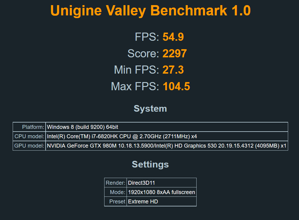 Und leider  ja: die 980m throttlet auch auf standard Takt. nicht bei jedem Spiel. Auch ganz selten in 1080p. Bei erreichen von 74-76 (Bios 1.0.0) grad oder bei 73 grad (Bios 1.2.2) taktet die Karte auf 550mhz runter. Das Problem tritt in UHD viel stärker auf weil da einfach die Last auf eine GPU größer ist als bei 1080p. Ein Spiel kann in 1080p und UHD 99% Last erzeugen. in UHD wird die GPU wärmer. GTA 5 UHD 45 FPS 69 Grad, 1080p 60 FPS Vsync 58 Grad / vsync aus 64grad