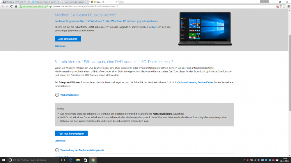 Edit: Das ist die Seite vom Creation Tool und dort gibt man nichts ein. Man lädt das Tool herunter und mit diesem erstellt man dann einen Stick. Die Iso ist die mit beiden Versionen, hab mal einen Screenshot der deutschen Seite. Genau von der Seite aus habe ich angefangen meinen Stick zu erstellen, mit dem ich dann die Installation versucht habe.