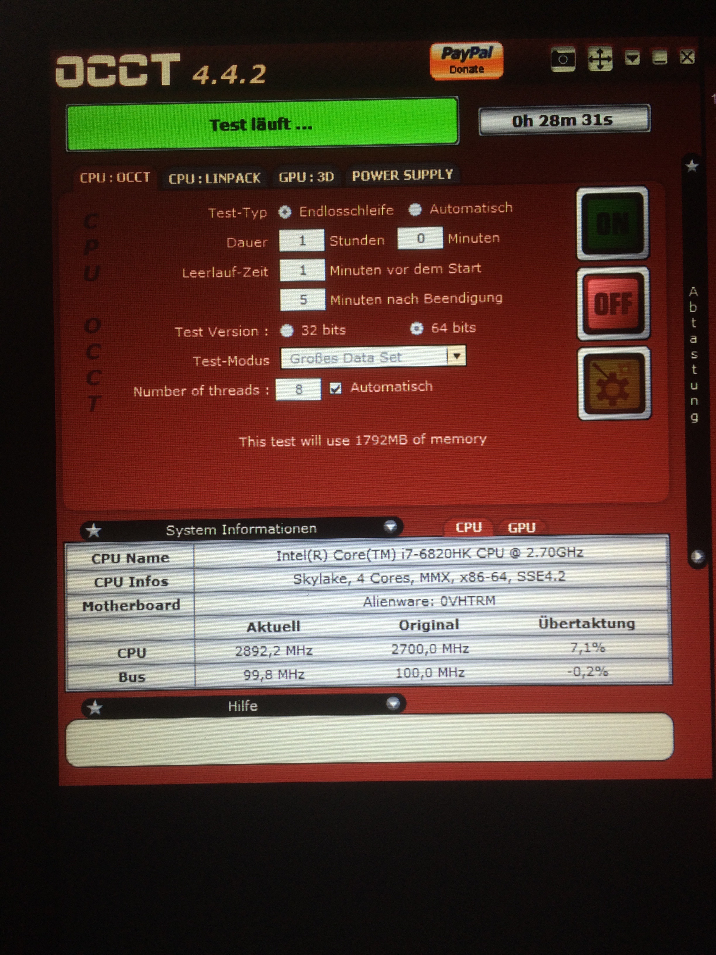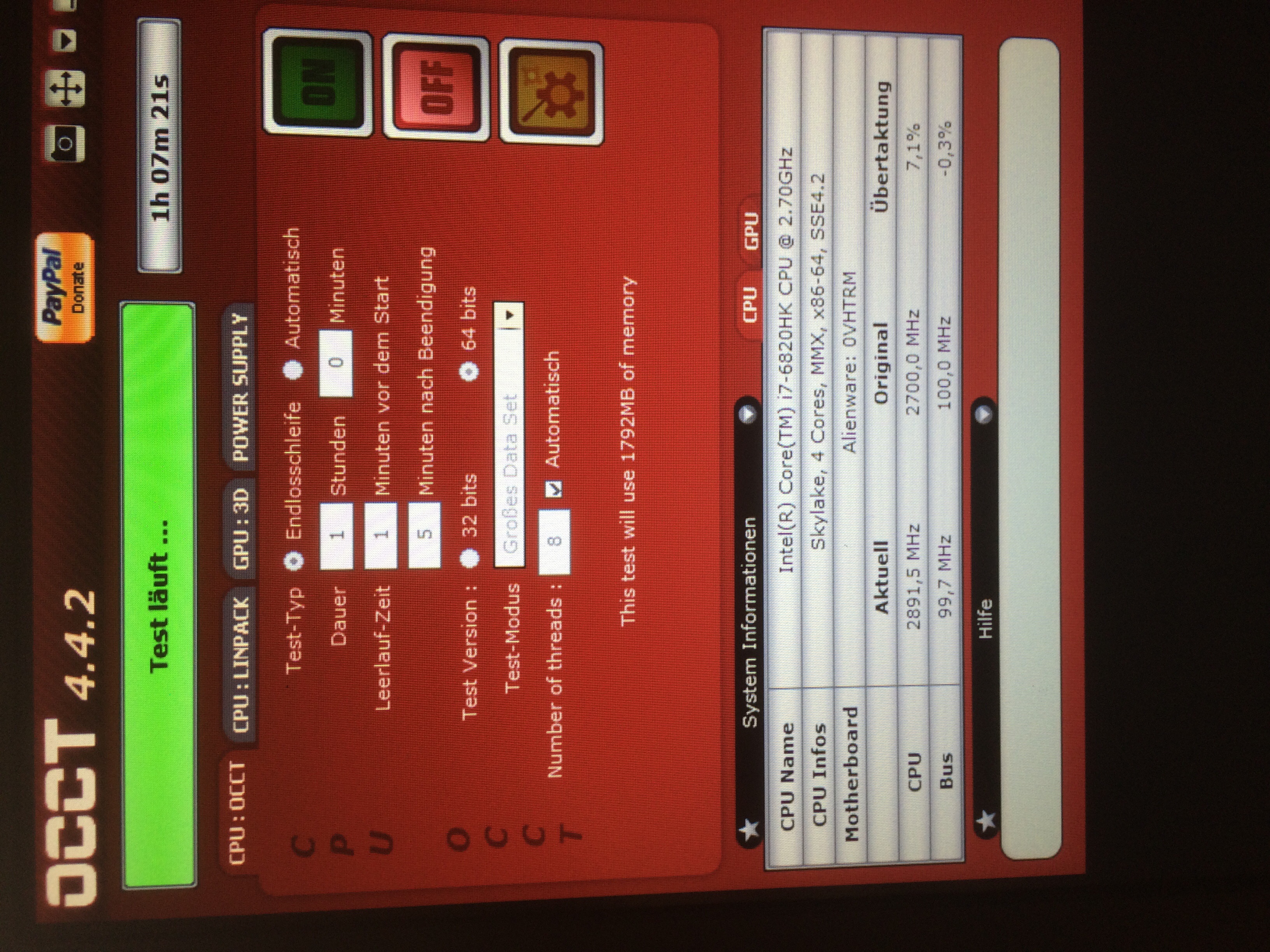 Jup mit occt testen. 1 bis 2h stunden sollte der Test schon dauern damit man von einem halbwegs stabilen Setting sprechen kann.