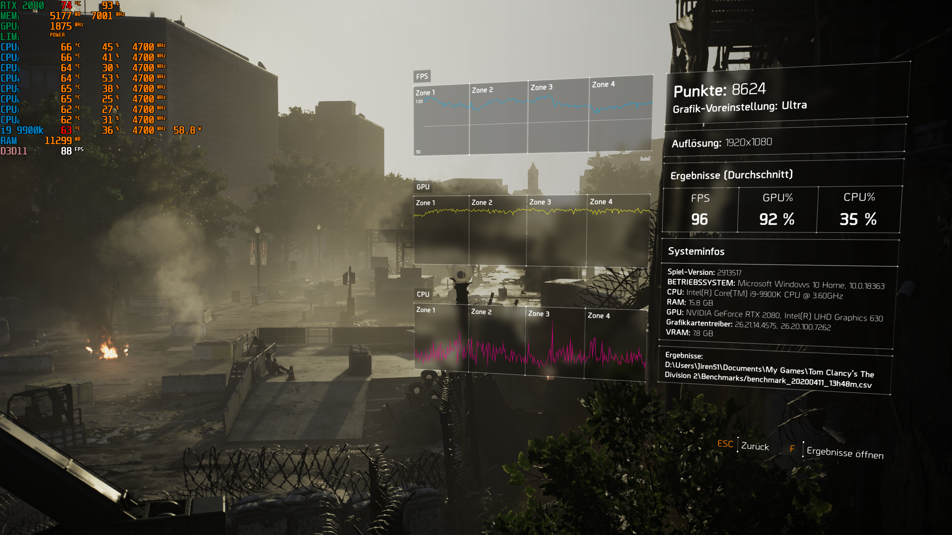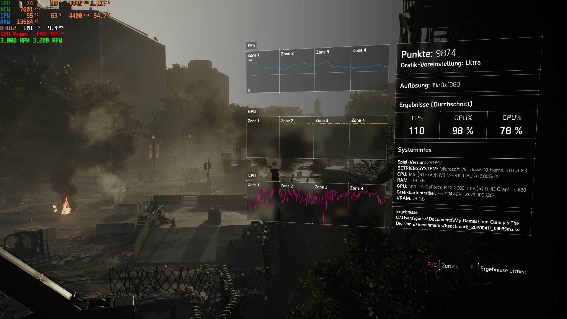 Und mach bei den Punkten bei ,,Zeige OSD,, den Haken rein. Wie im Bild. Dann hast du schon mal Übersicht. Lass dann den Division Benchmark noch Mal laufen und mach am Ende n Screenshot mit den OSD Einblendungen. Dann sehen wir schon Mal was dein Rechner für Takte anlegt.