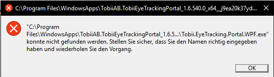 Dann habe ich noch ein weiteres Problem, ich bekomme mein Tobii Eye nicht mehr installiert, es war drauf ich hab es über das Experience gestartet und eingerichtet, danach hab ich die Software von tobii fürs streaming herunter geladen (tobii Ghost) danach konnte ich es nicht mehr starten und bekam eine Fehlermeldung das die Tobii Exe nicht ausgeführt werden konnte, da sie nicht mehr Existiert. (Anbei ein Foto)
